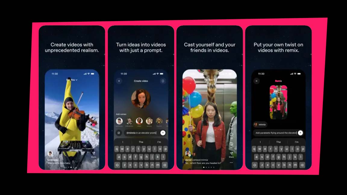 OpenAI testet gerade eine TikTok-ähnliche App: Sora 2. Darin läuft ein vertikaler Video-Feed mit Empfehlungen, ähnlich wie der „For-You“-Feed von TikTok. Nutzer:innen können Inhalte remixen (also bestehende Clips neu zusammensetzen) oder sogar sich selbst per „Cameo“-Funktion ins Video einbauen. Ziel: hyperreale Videos mit Sound.